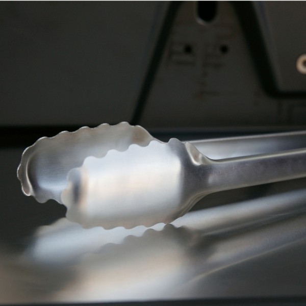 As pinças OUTDOORCHEF têm as extremidades serrilhadas para sergurar os alimentos mais facilmente e servem como colher, o que facilita a colher molhos.